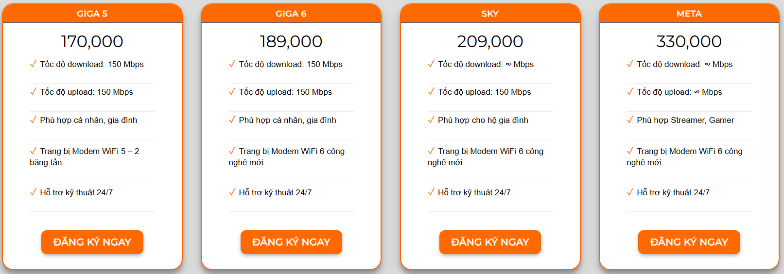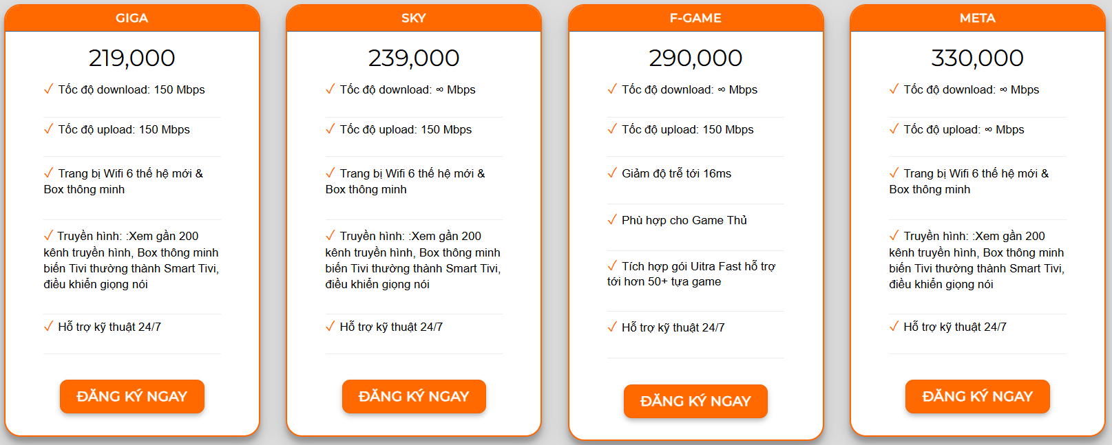 FPT Telecom xin trân trọng gửi tới Quý khách hàng báo giá Internet FPT siêu nhanh – ổn định với giá siêu hời. Với cá nhân, hộ gia đình chỉ cần lựa chọn từ gói cước GiGa tới Meta có thể đáp ứng tốt mọi nhu cầu giải trí, xem phim chất lượng cao, chơi game online, livestream.
